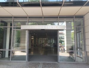 Die Eingangstür der Frauenklinik der Charité, die unter anderem zu Lena Hofmann führt.