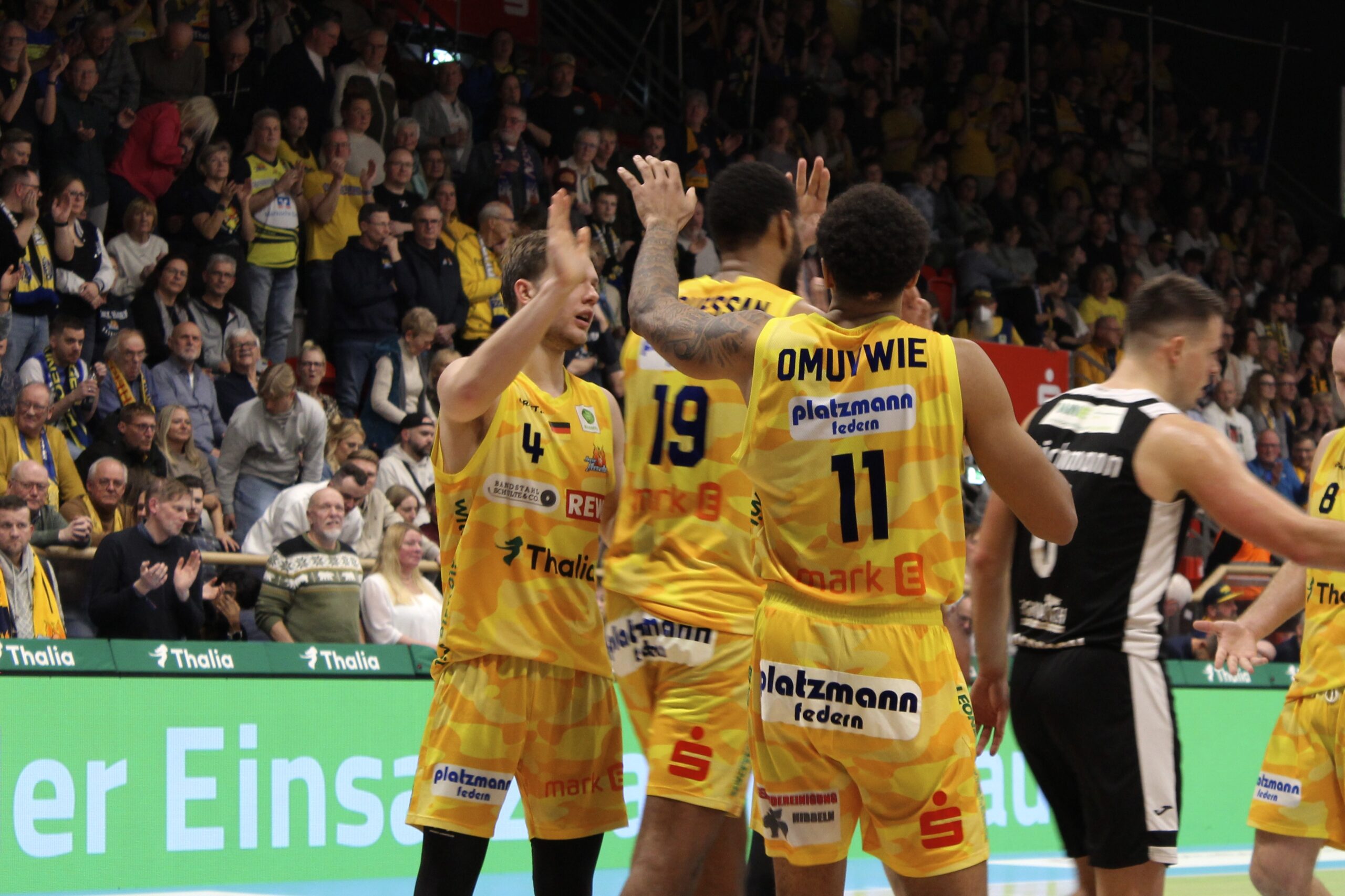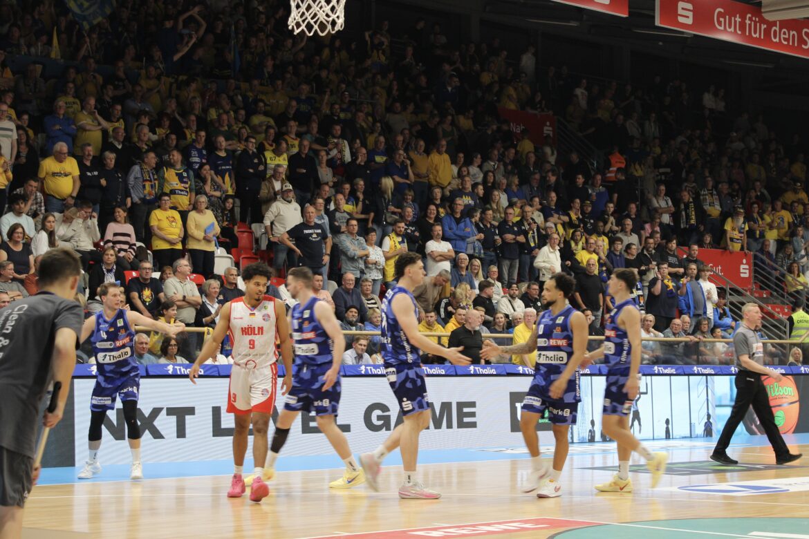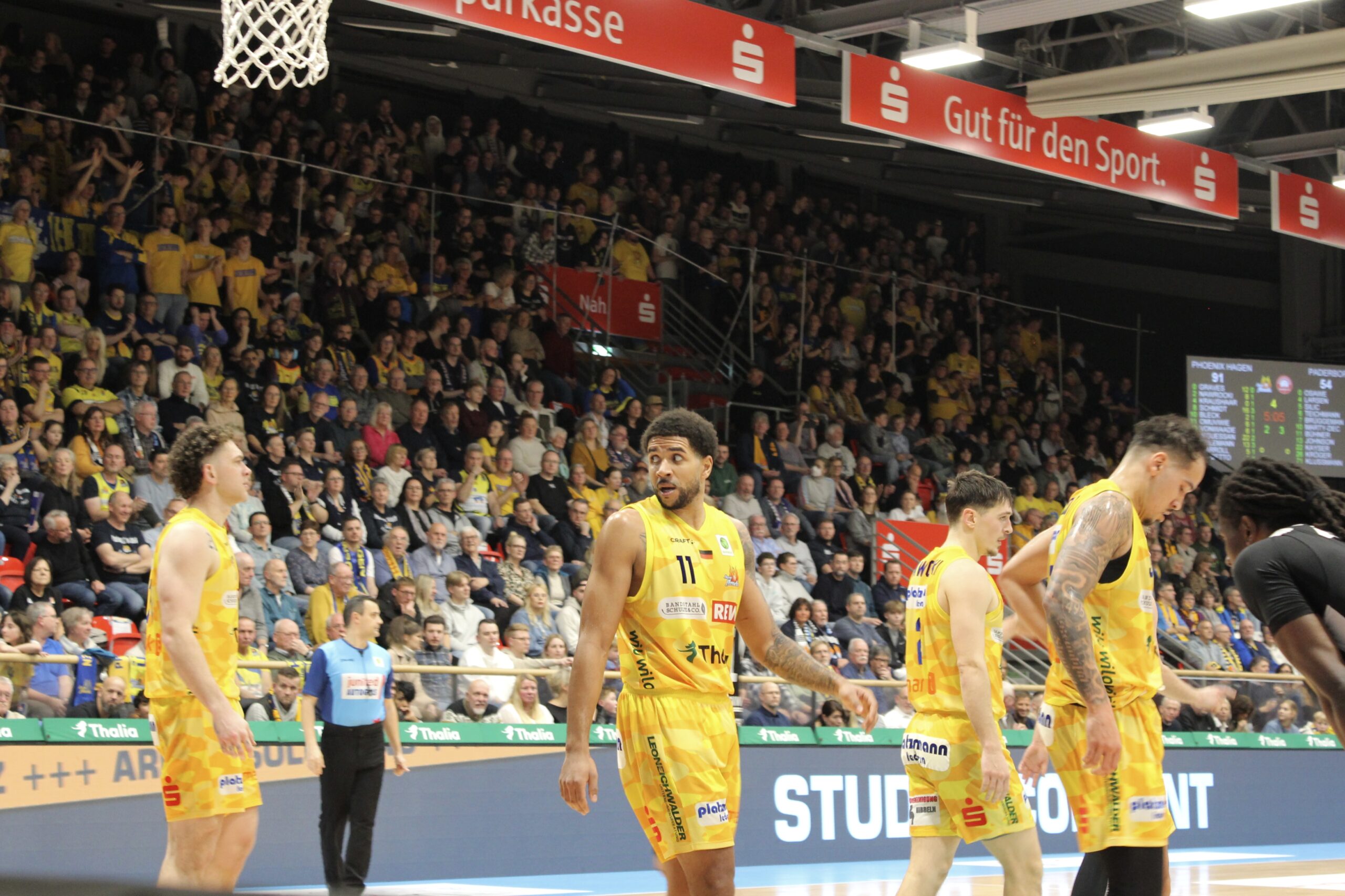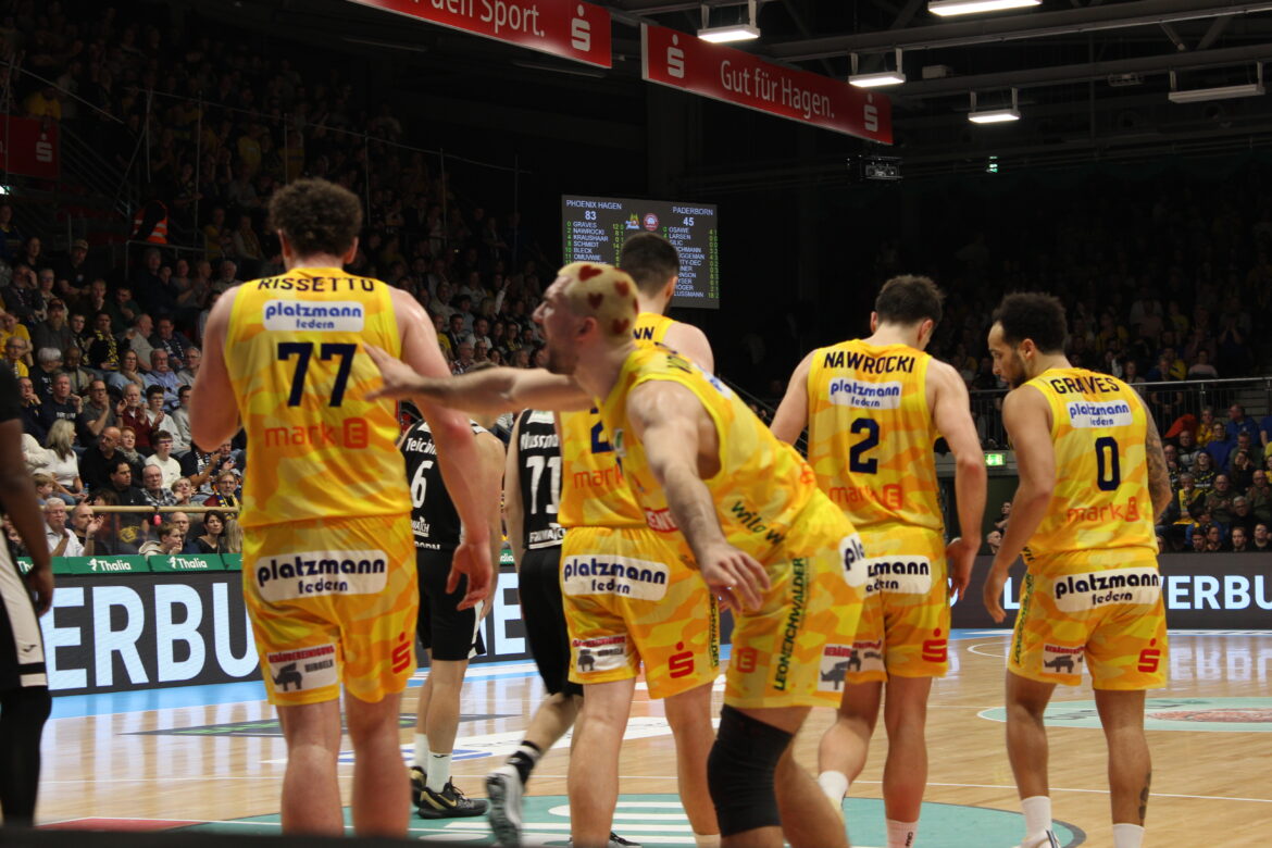 Am Ende gewinnt Phoenix deutlich: 113 zu 97. Blau-gelbes Konfetti regnet herab – sieben Siege, keine Niederlage bisher. Nach dem Abpfiff klettert Kapitän Dennis Nawrocki hinauf zum Heuboden. Er ruft: „Spitzenreiter, Spitzenreiter, hey, hey, hey!“ Alle antworten geschlossen zurück, springen gemeinsam bei der traditionellen Humba; selbst Anzac Risetto macht unten vom Spielfeldrand mit Halskrause begeistert Bewegungen dazu. Zum Abschluss stimmt Nawrocki noch ein Geburtstagsständchen für seine Schwiegermutter im Publikum an.