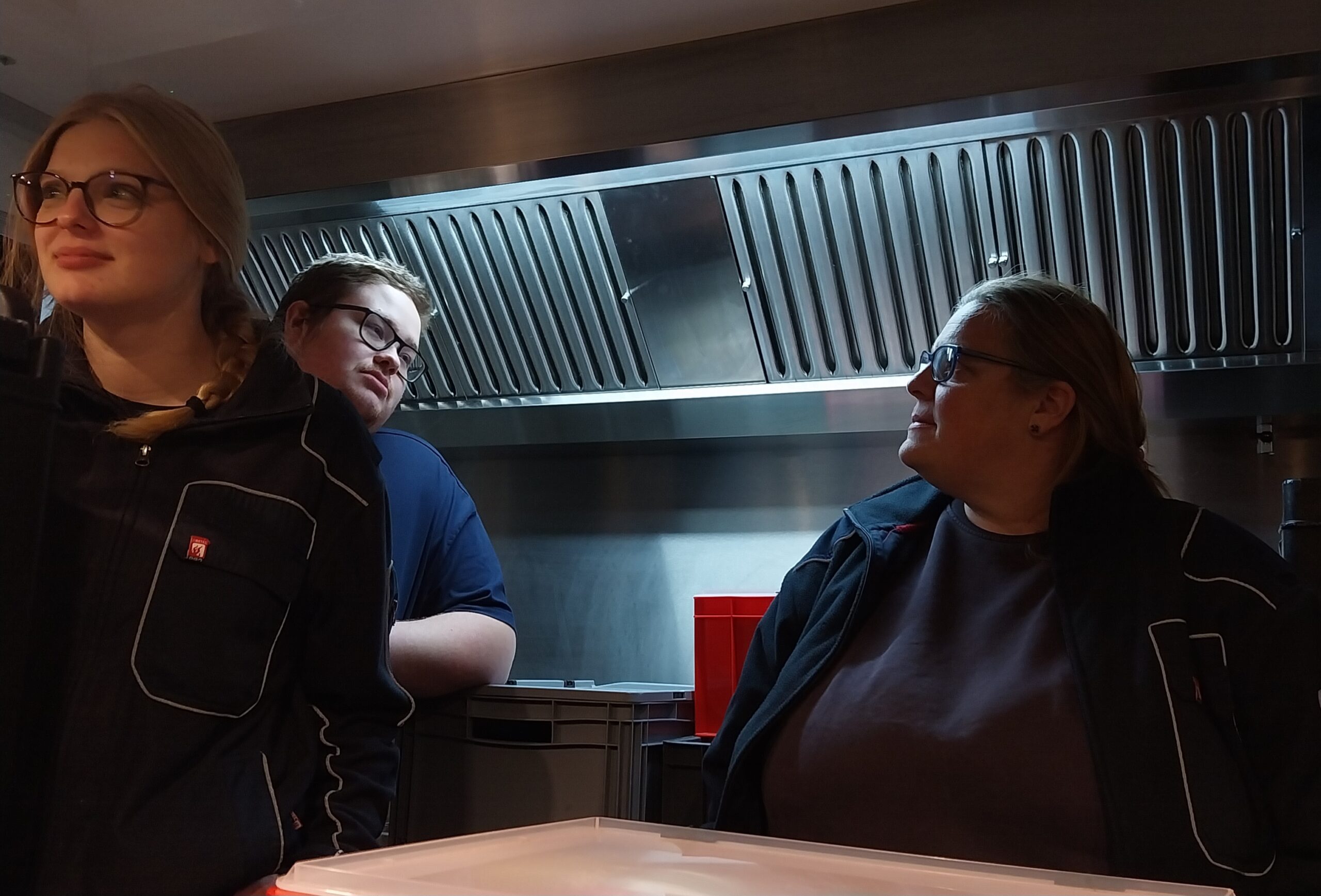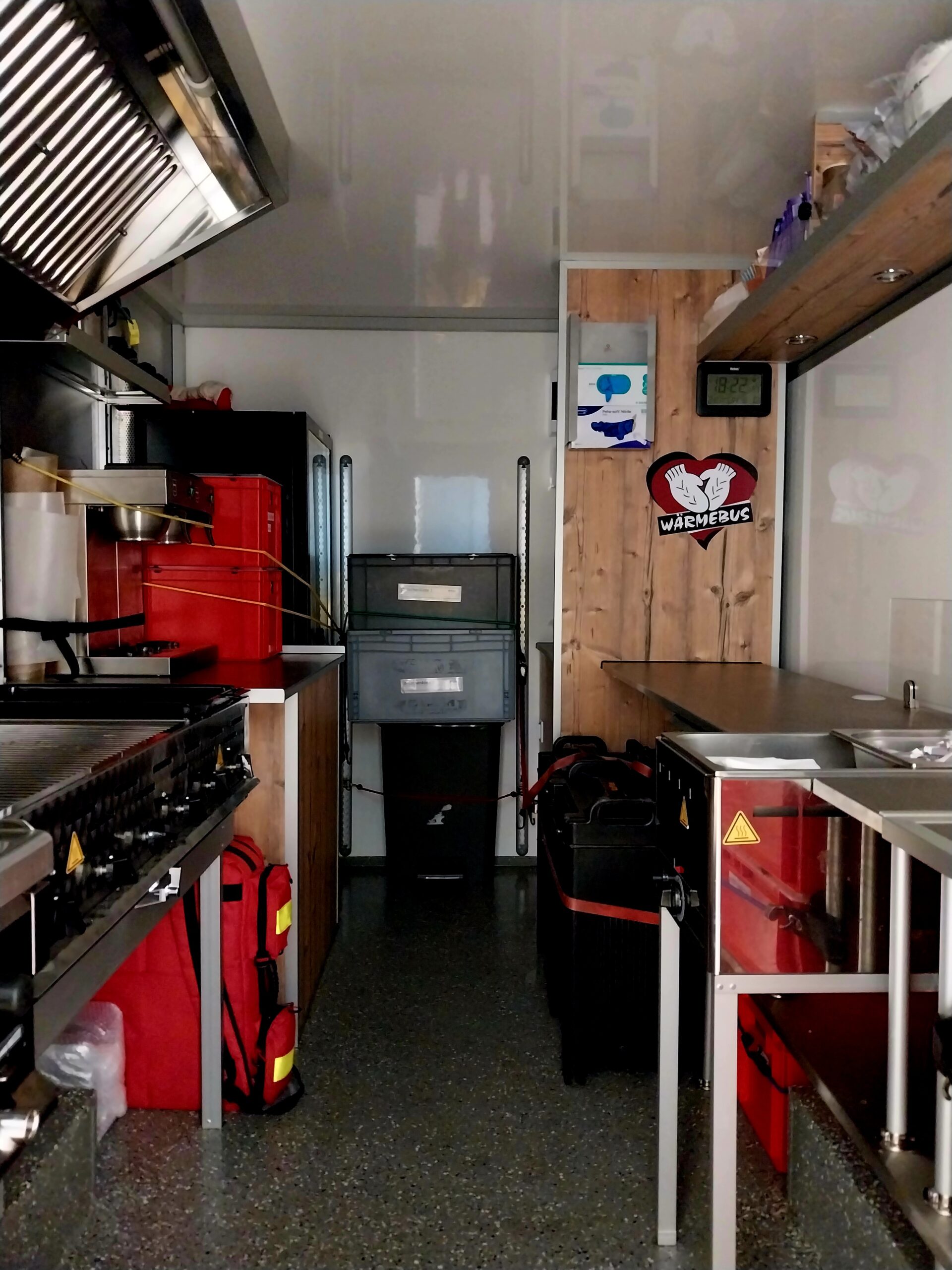 Die Mitarbeitenden spielen sich Sprüche hin und her. Sie sind vertraut miteinander. Diese lockere Stimmung geht auch auf die Gäste über und überdeckt das doch ein bisschen sterile Ambiente des Wärmebusses.