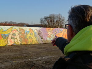 Vom Dortmunder U aus geht es Richtung Nordstadt, zu der größten legalen Graffiti-Wand in NRW. Georg erklärt, dass sich auf der Straße geduzt wird. Alle nennen ihn nur „Schorsch“ oder „Schorschi“.